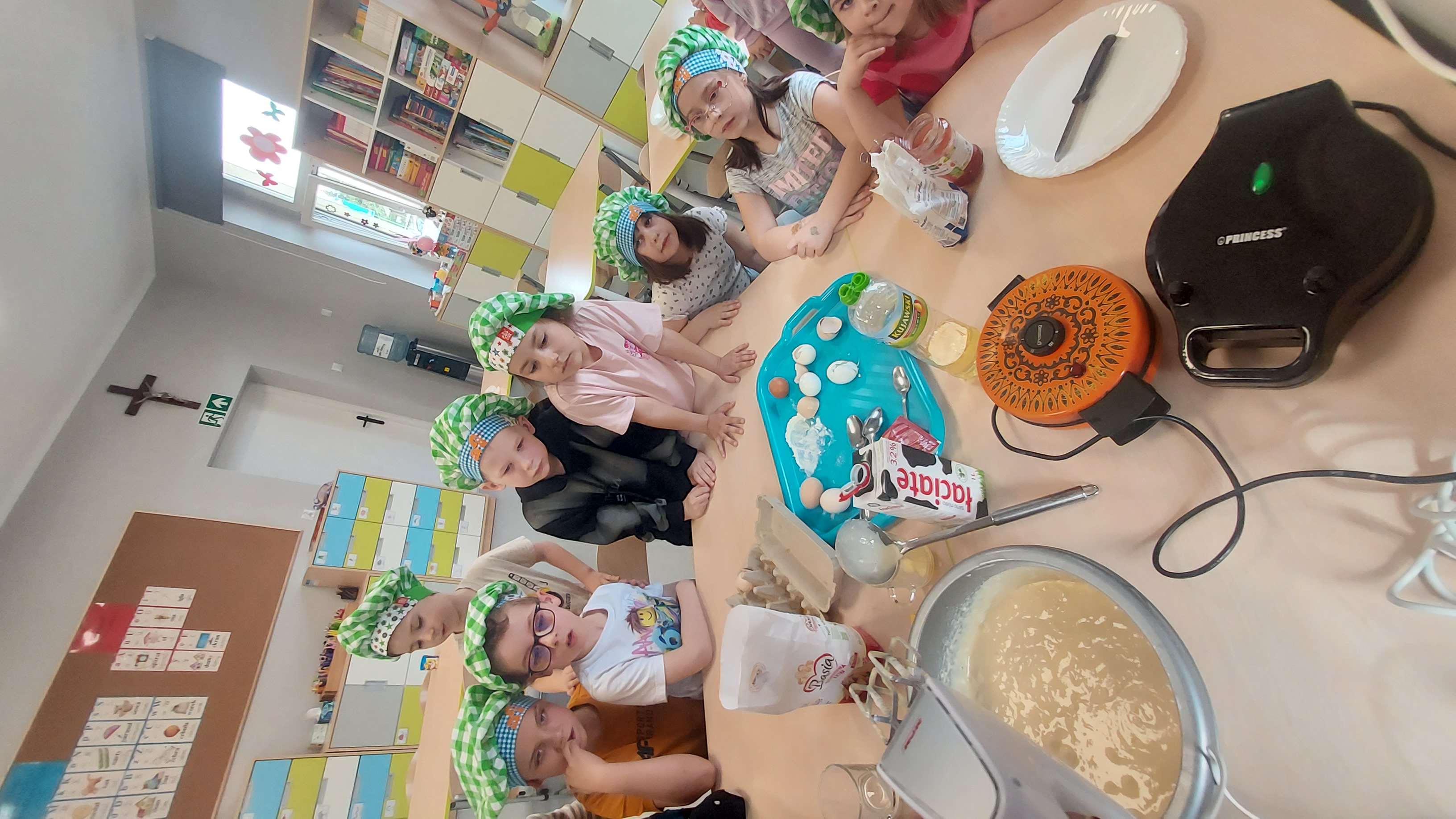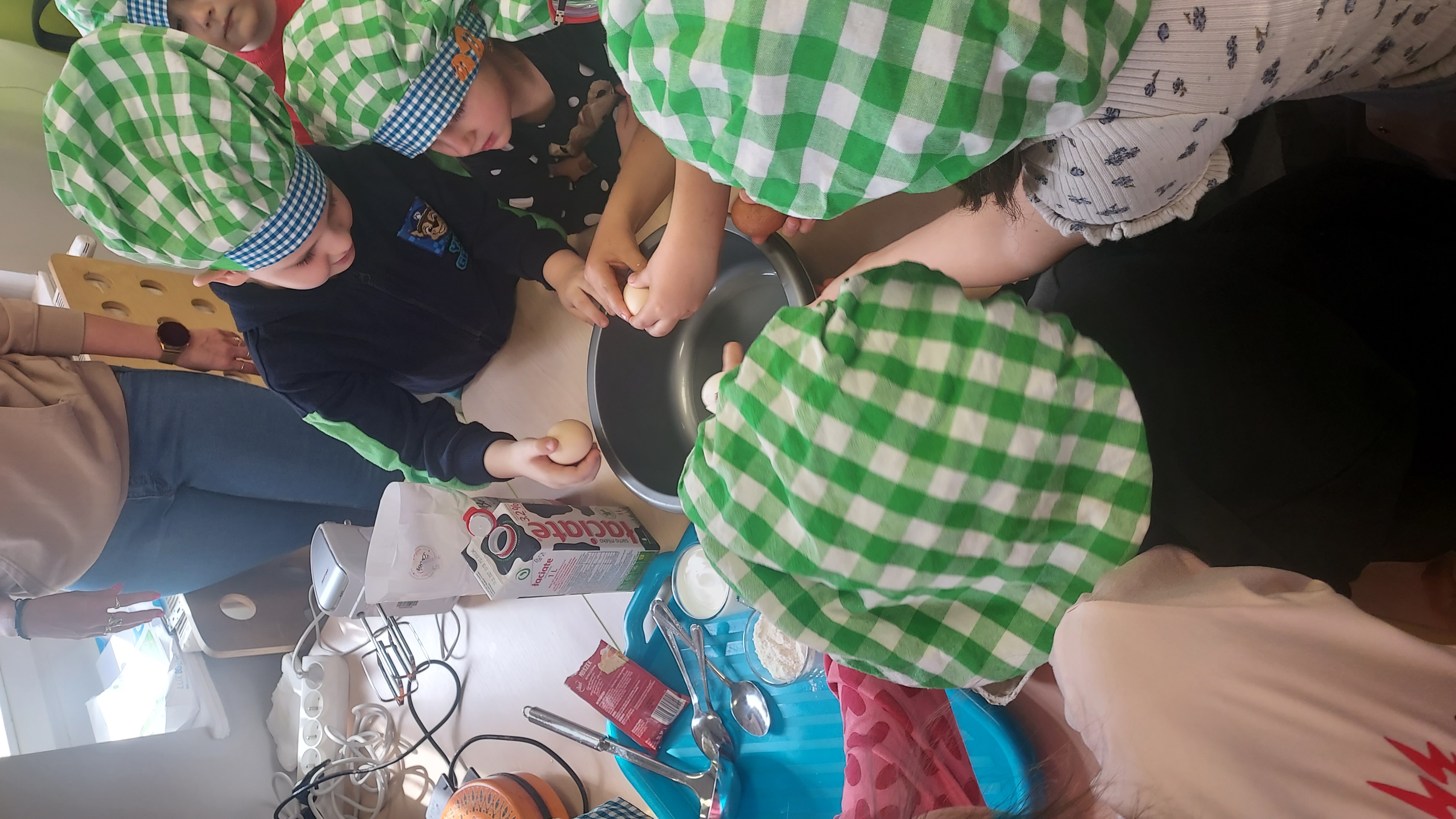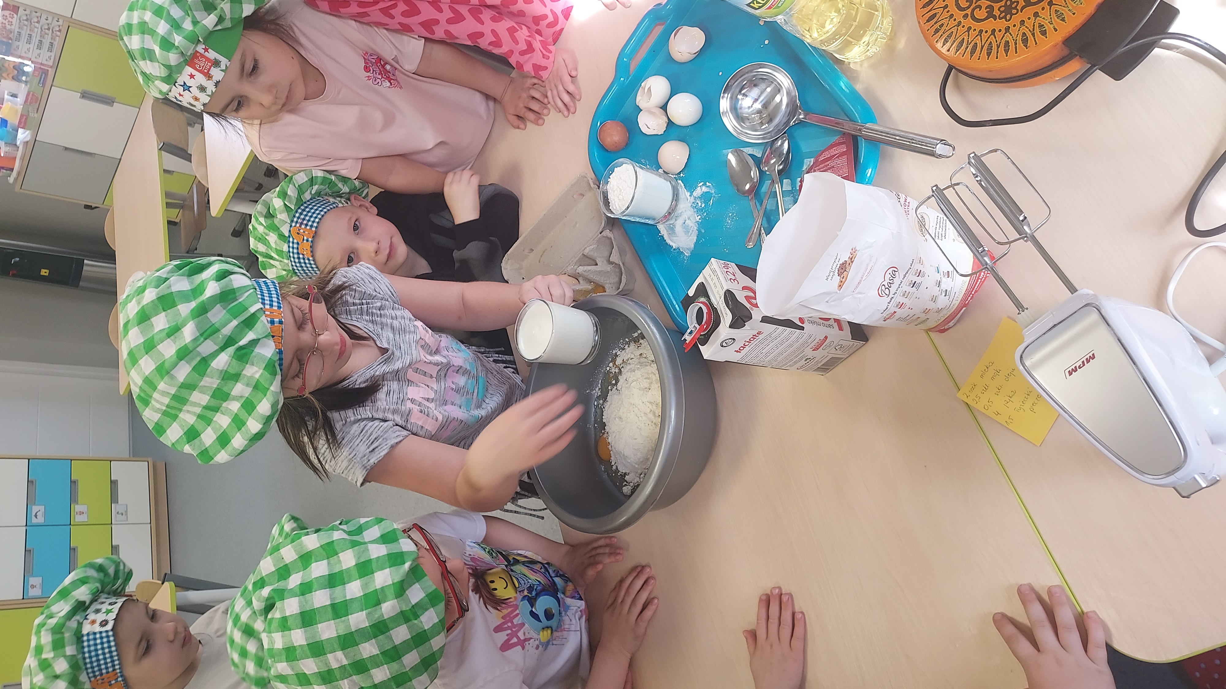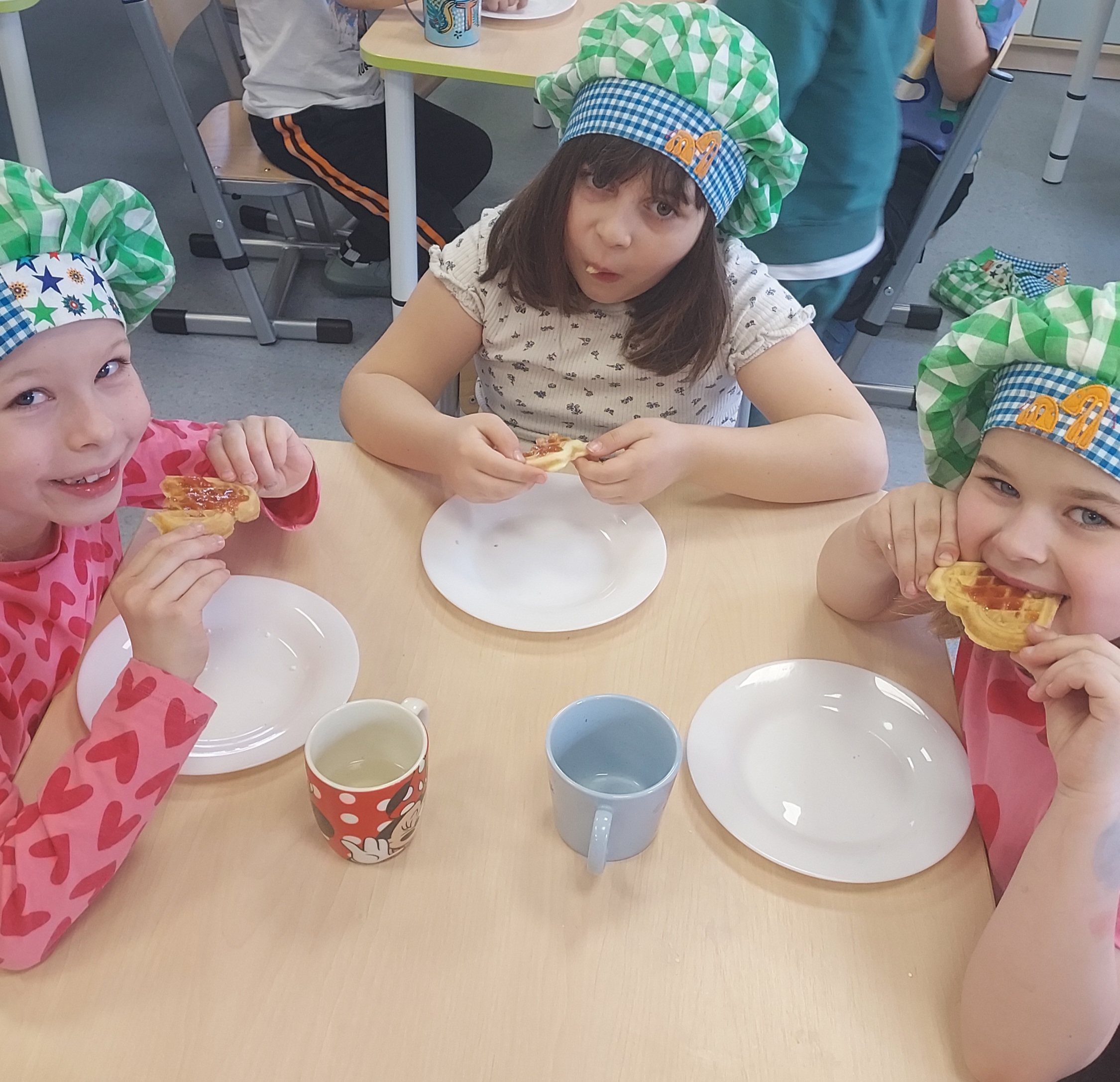 Podczas warsztatów kulinarnych przedszkolaki z Szymanowa zrobiły ciasto na gofry. Najpierw wymieszały produkty, a potem z cierpliwością czekały na upieczone, pachnące przysmaki. Muchomorki postawiły na klasykę i najbardziej sobie upodobały gofry z dżemem i z cukrem pudrem. Palce lizać, było wesoło i przepysznie!!!