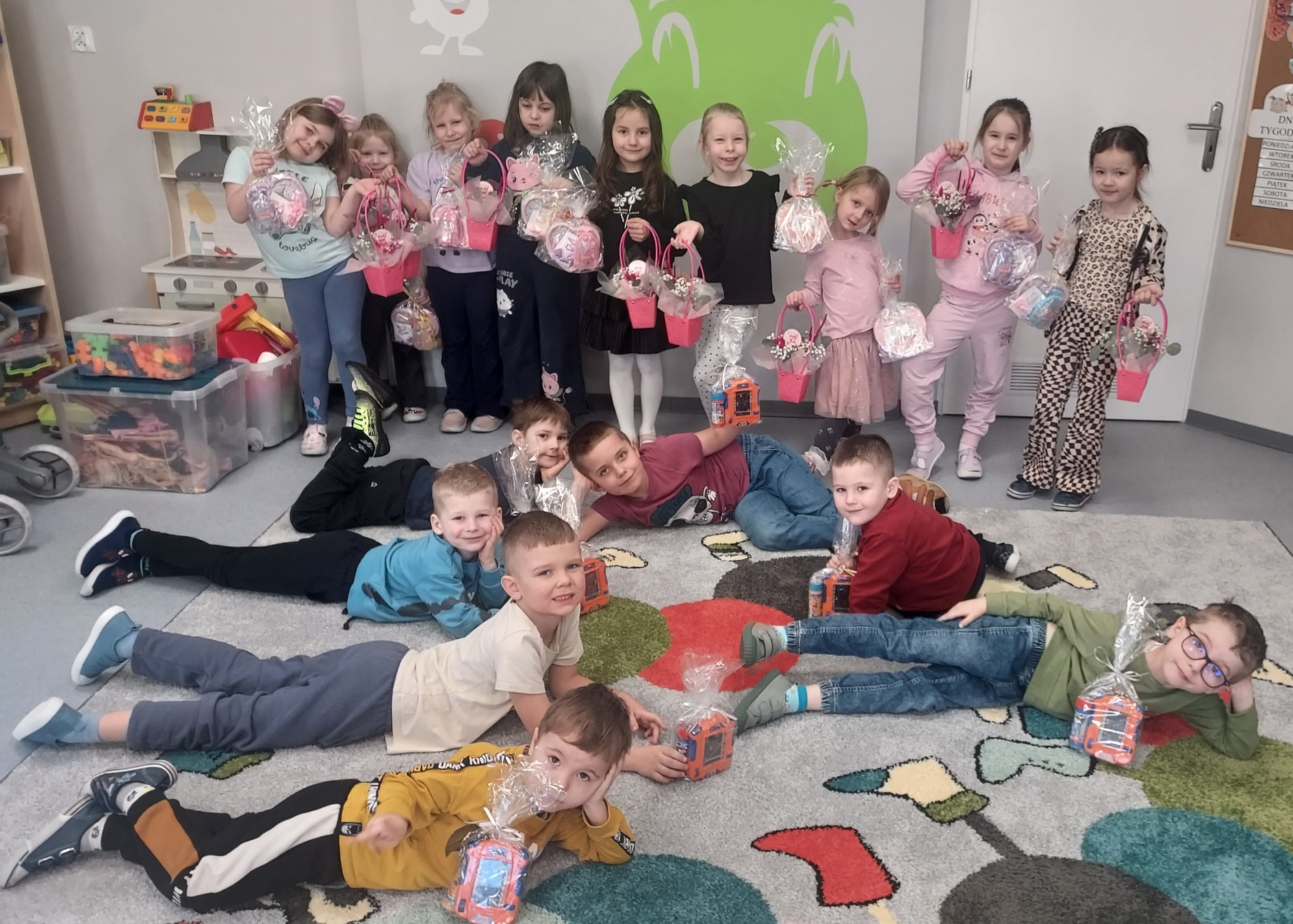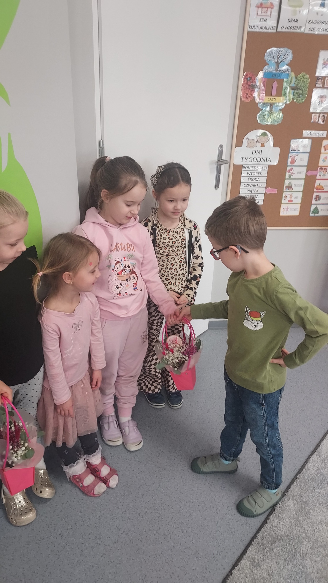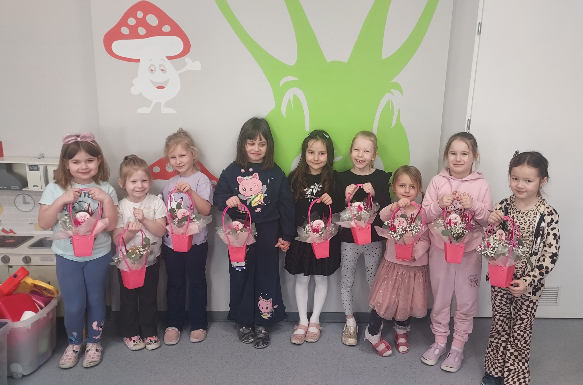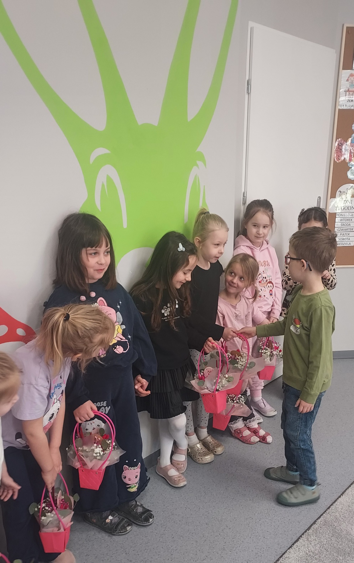 Chłopcy z grupy Muchomorki jak co roku pamiętali o swoich małych kobietkach. Żłożyli życzenia, zaśpiewali sto lat i wręczyli przepiękne kwiatki i upominki. Obiecali ,że zawsze będą dla swoich koleżanek pomocni i mili, nie tylko 8 marca. Z kolei dziewczynki odwzajemniły się pięknym, szczerym uśmiechem. Kochane kobietki małe i duże , z okazji Waszego święta życzymy zdrowia, szczęścia i spełnienia marzeń !!