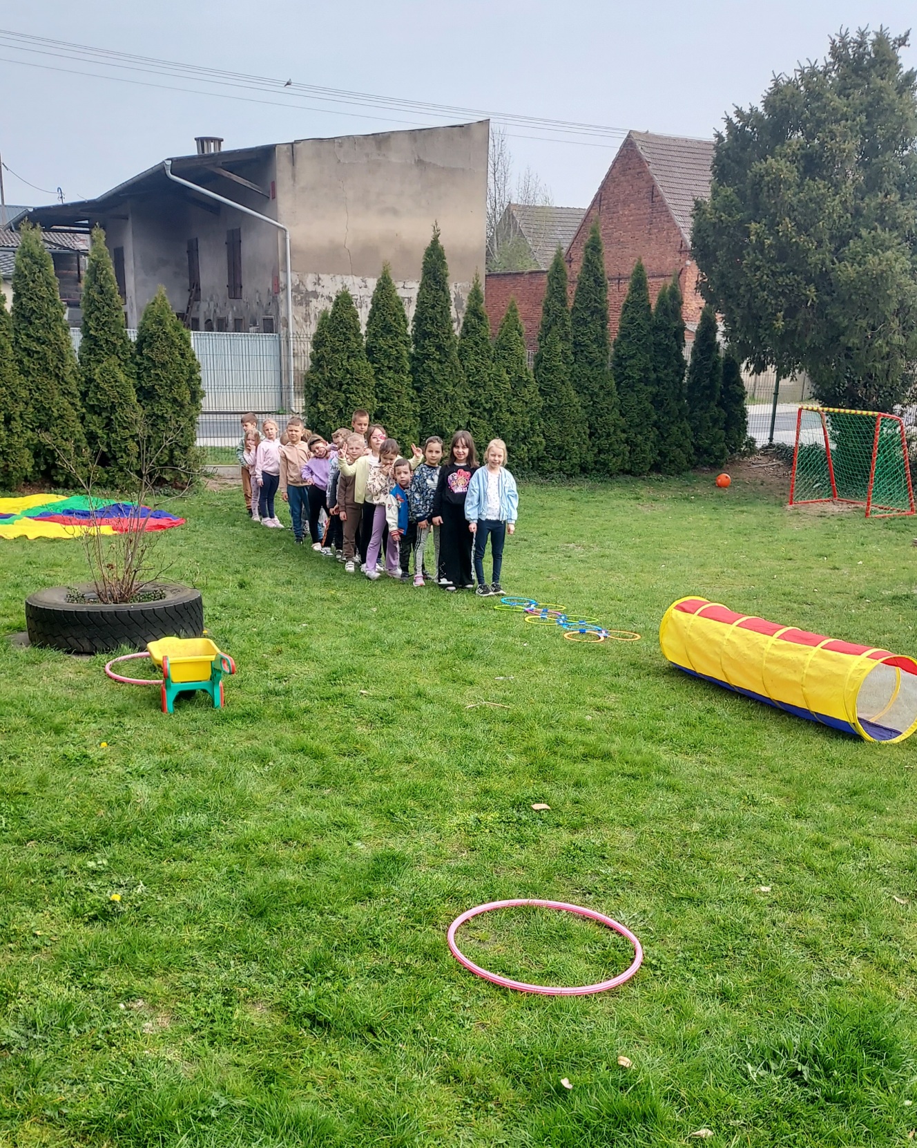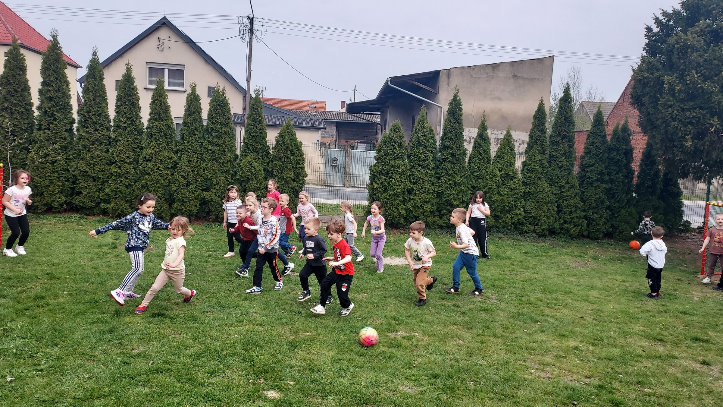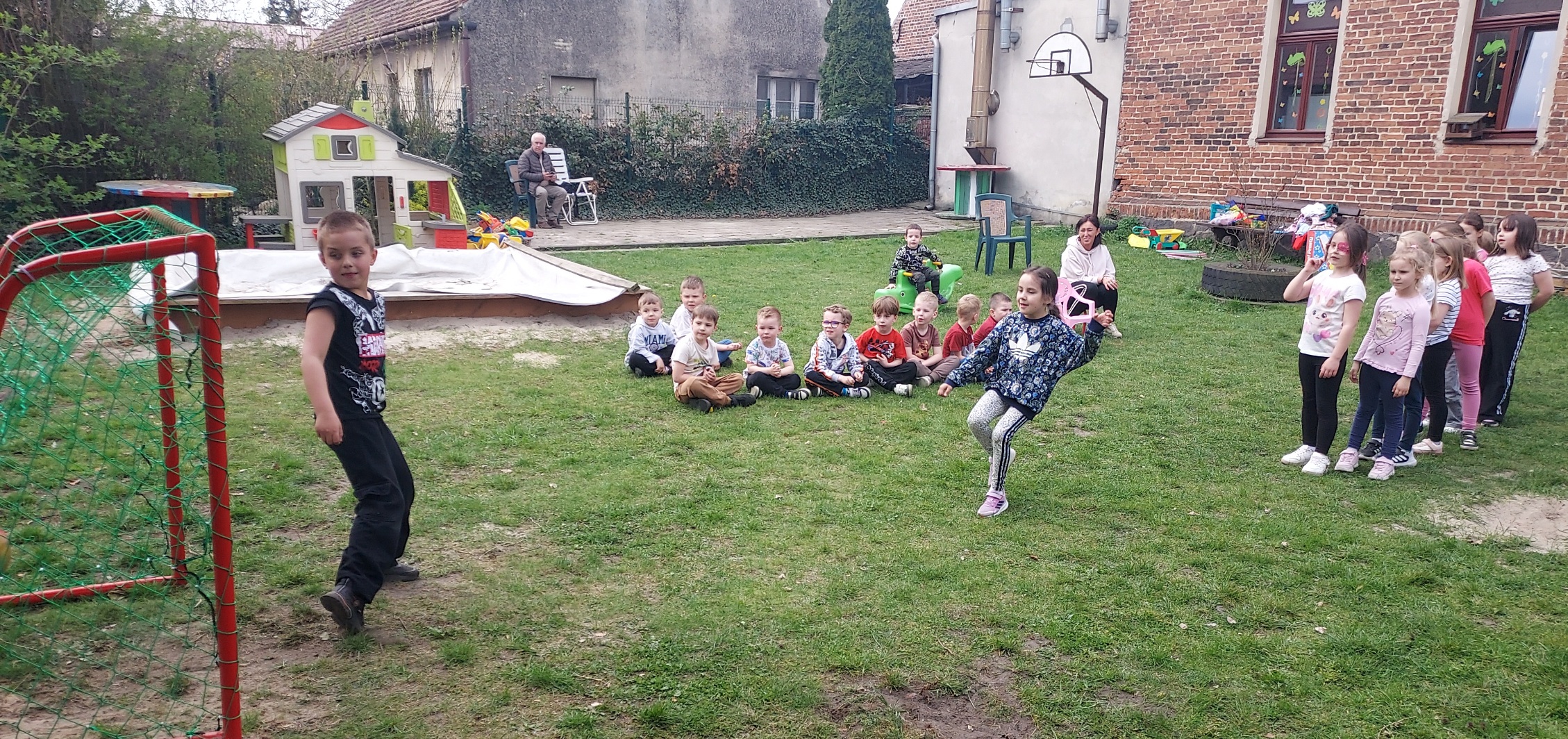 " Ruch to zdrowie, niech każdy się dowie". O tym przekonały się Muchomorki podczas gier i zabaw na świeżym powietrzu. Z okazji Dnia Sportu przedszkolaki wzięły udział w wyścigu rzędów, pokonywały tor przeszkód, a na koniec rozegrały mecz piłki nożnej. Było dużo śmiechu, ruchu i dobrej zabawy. Wszyscy zasłużyli na brawa i drobne upominki. Serdecznie dziękujemy panu Karolowi Zandeckiemu za ufundowanie nam bramek do piłki nożnej w ogrodzie przedszkolnym. Przedszkolaki są szczęśliwe, że mogą poczuć się jak na prawdziwym boisku. Jeszczec raz ...Wielkie Dzięki