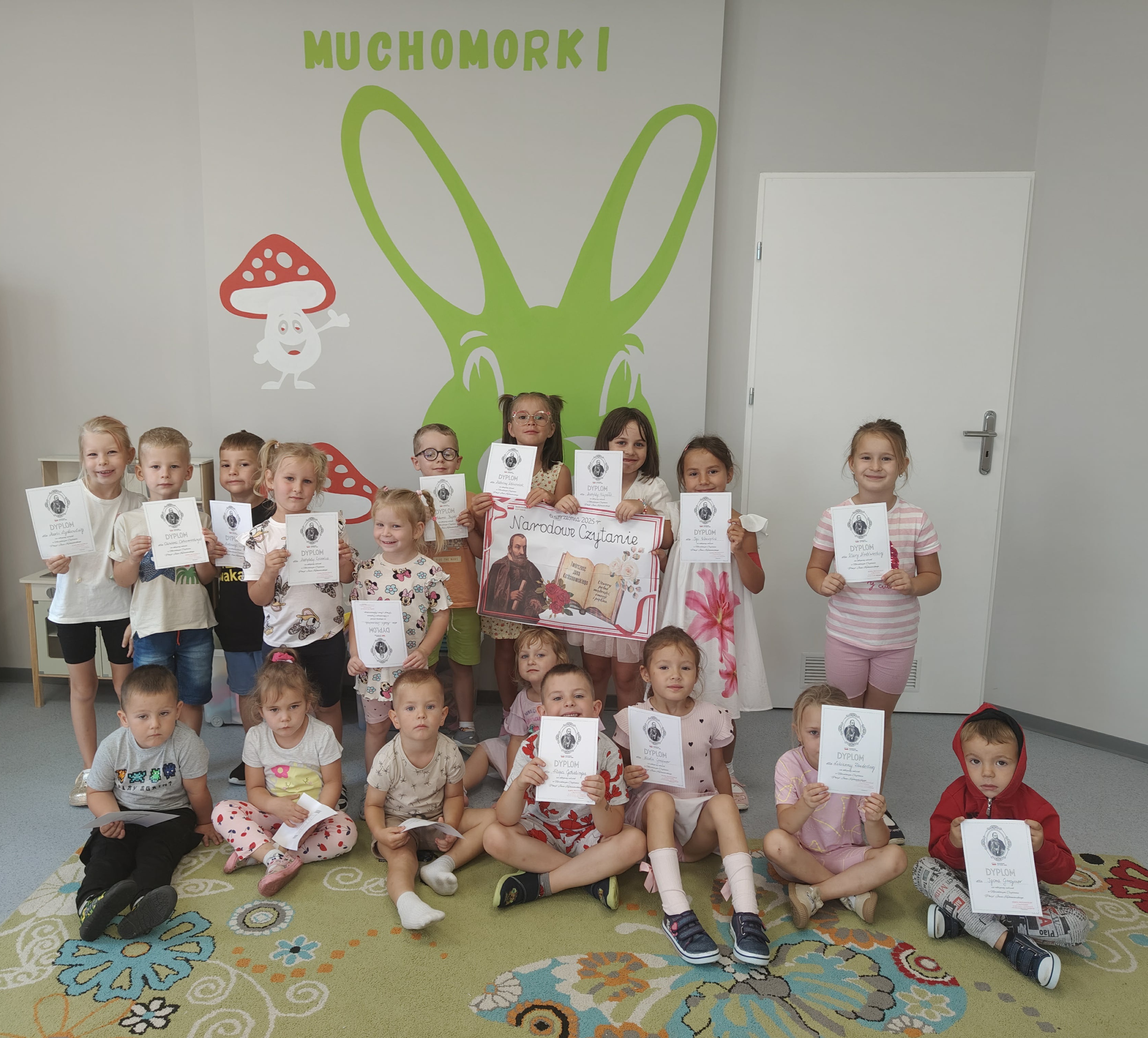 Choć tekst nie był łatwy, to dzielnie próbowały odpowiadać na zadawane pytania odnośnie jego treści. Dzięki takim akcjom możemy zwrócić uwagę na potrzebę dbałości o język ojczysty i wzmacnianie narodowej tożsamości.Brawo Muchomorki?