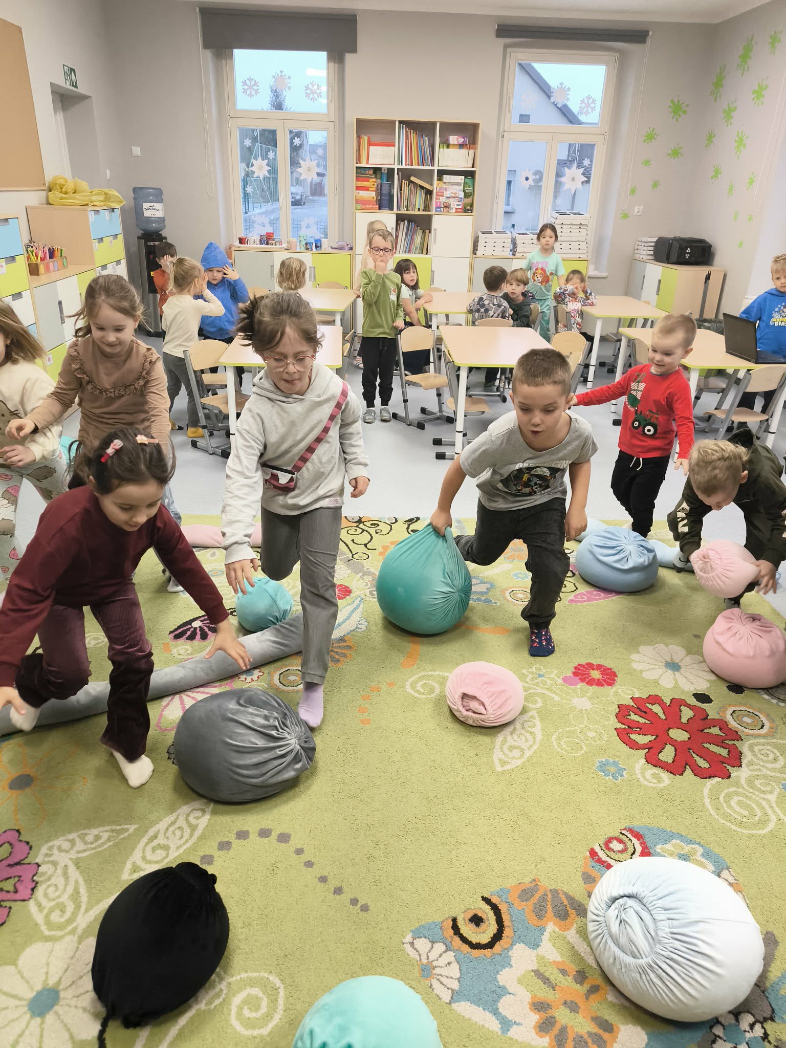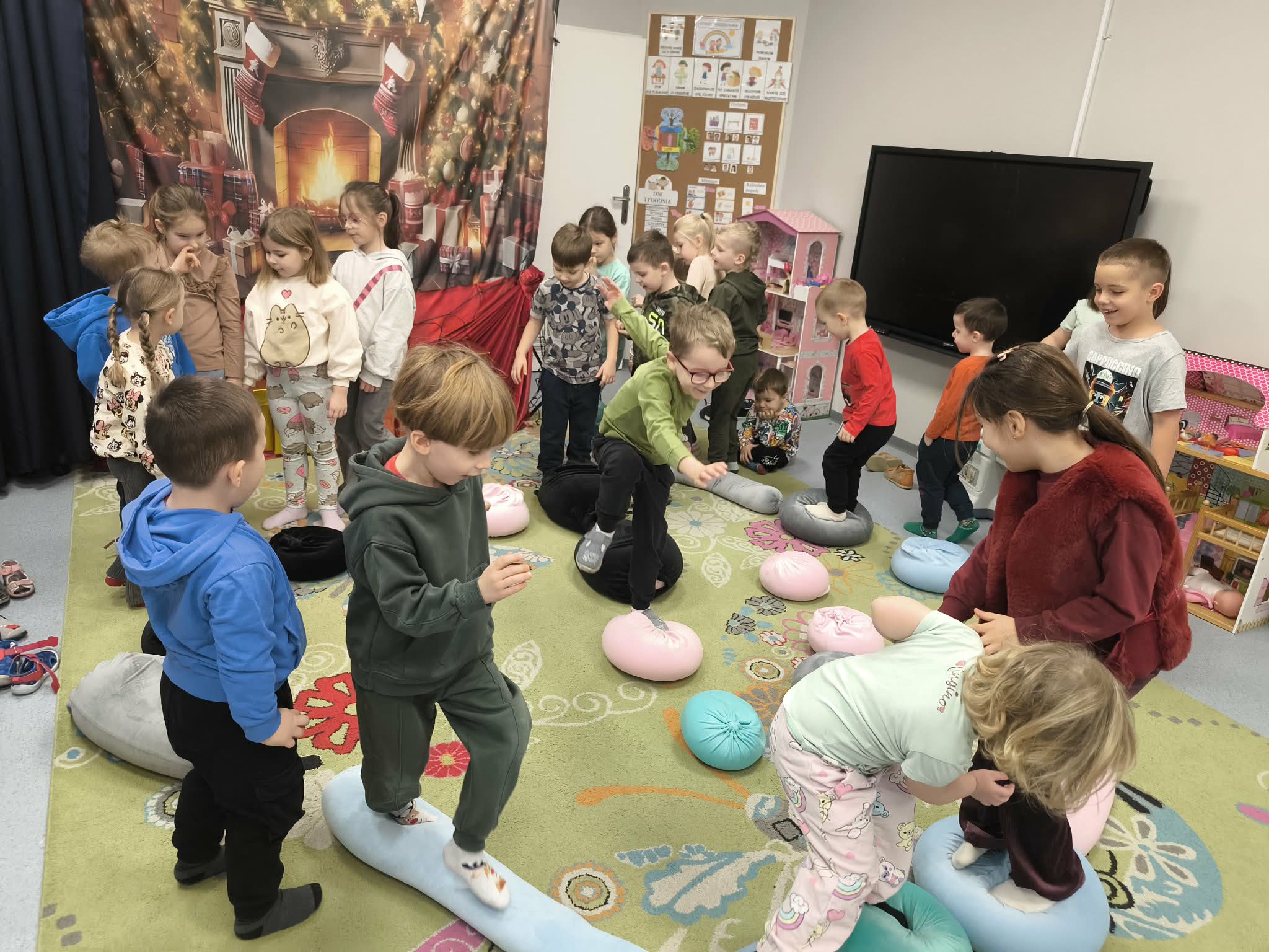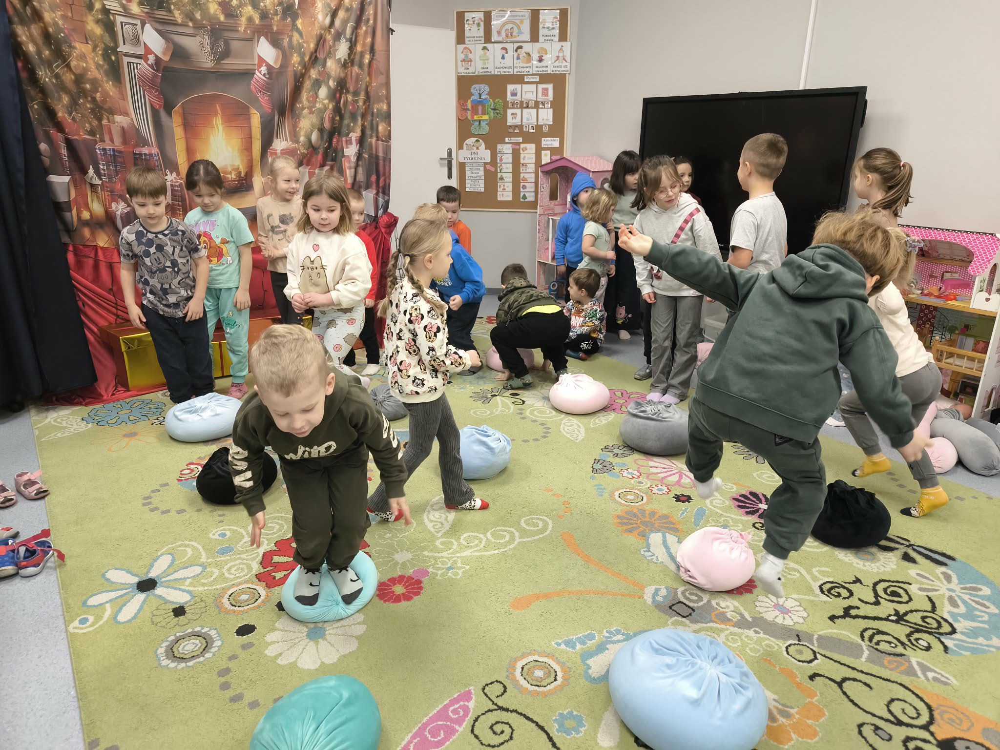 Dzieci w naszym przedszkolu odbyły dziś pierwsze zajęcia w ramach warsztatów SensoLyke z psycholog panią Olgą Kowalczuk . Uczestniczyły w zabawach ruchowych i sensorycznych, które wspierają rozwój poprzez ruch i doświadczenie. Spotkanie rozpoczęło się od swobodnej zabawy zapoznawczej, a następnie dzieci brały udział w aktywnościach o charakterze ogólnorozwojowym, m.in. w zabawie „Żabki” -skokach przez przeszkody o różnej wysokości, oraz w „Świecie dyni”, podczas którego zbierały elementy sensoryczne i ćwiczyły współpracę w grupie. Dzieci świetnie się bawiły i już nie mogą doczekać się kolejnych spotkań!